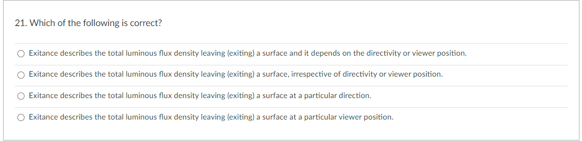Solved 21 Which of the following is correct? Exitance Chegg com