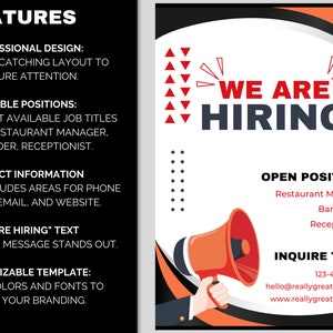 Now Hiring Sign Flyer Template Editable Canva Template Job Posting