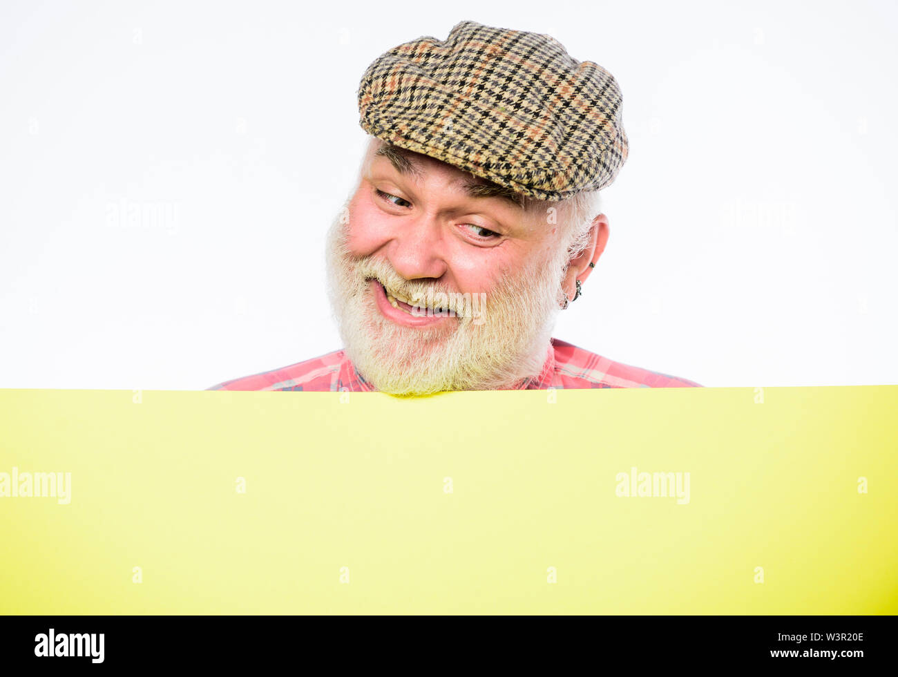 crazy look happy mature man in retro hat Advertisement Senior