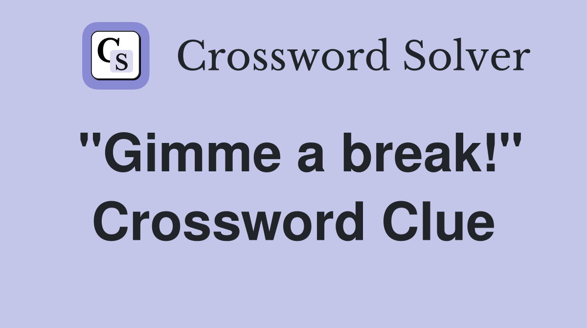 quot Gimme a break quot Crossword Clue Answers Crossword Solver