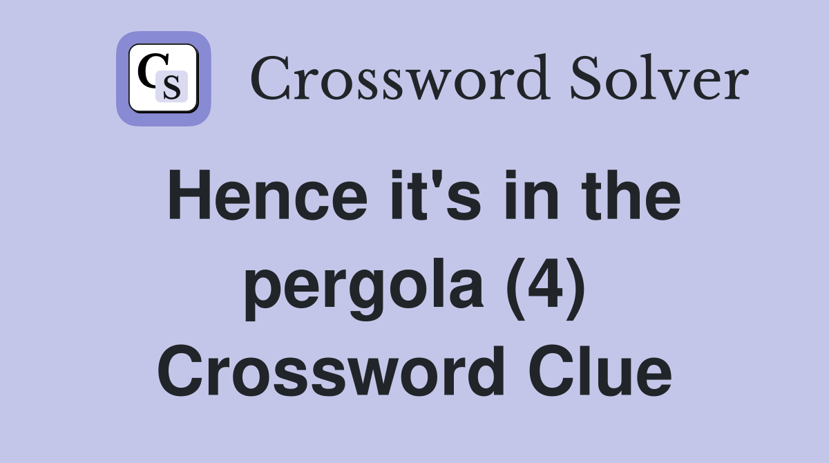 Hence it s in the pergola (4) Crossword Clue Answers Crossword Solver
