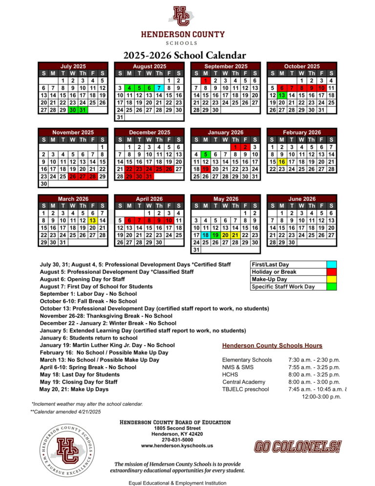Henderson County School ky 25 26 Calendar Revised PDF EduCounty