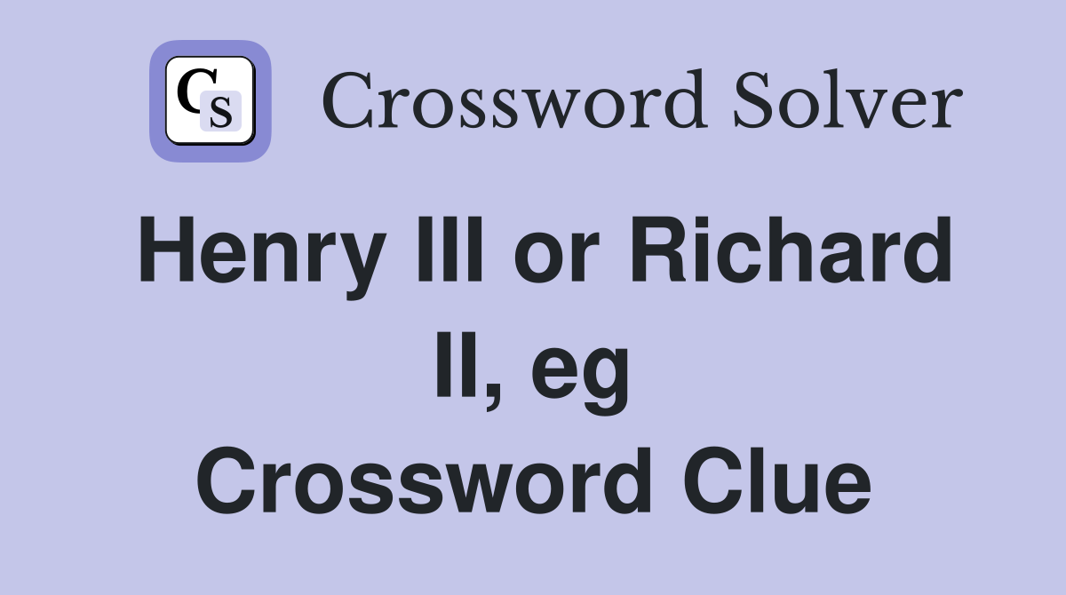 Henry III or Richard II eg Crossword Clue Answers Crossword Solver