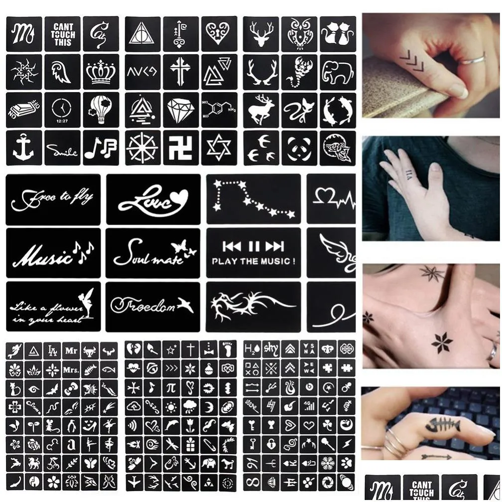 9 Sheet Temporary Tattoo Stencils Henna tattoo kit Reusable henna