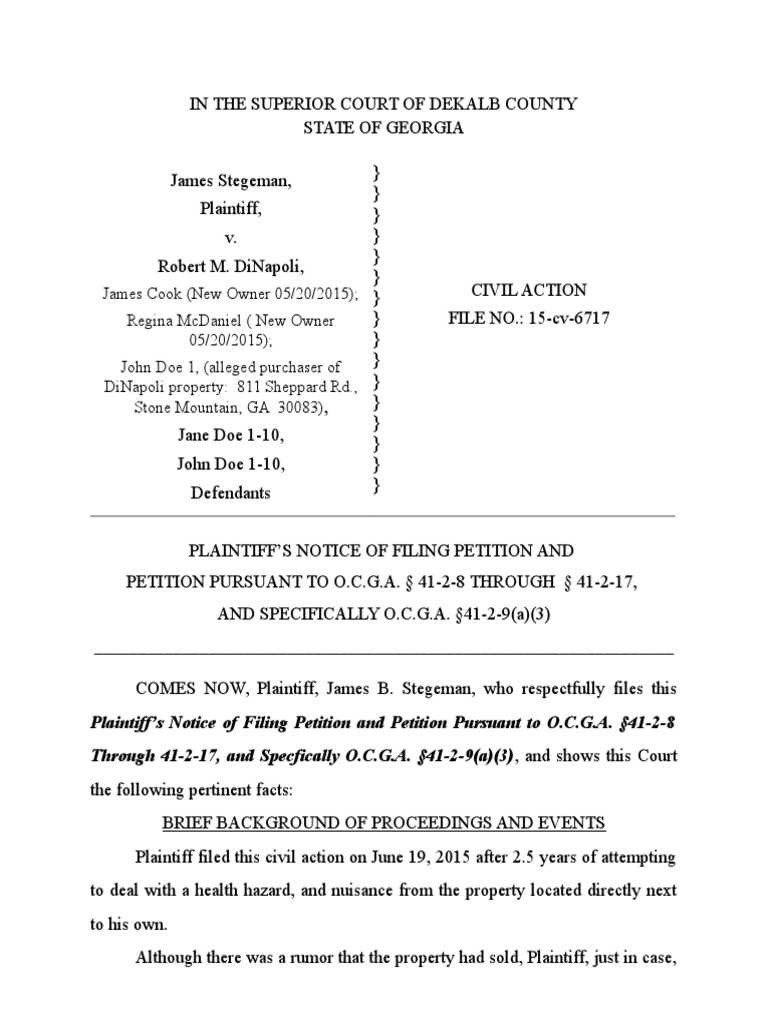Notice of Filing DeKalb County Georgia Superior Court Service Of