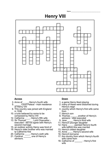 Here are some of the images for Henry Viii House Crossword that we found in our website database.