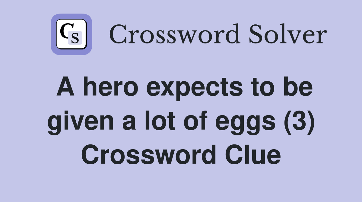 A hero expects to be given a lot of eggs (3) Crossword Clue Answers
