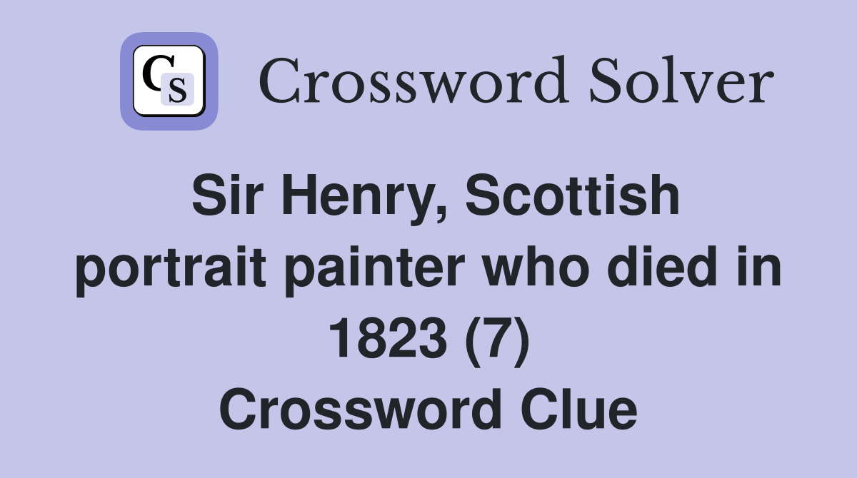 Sir Henry Scottish portrait painter who died in 1823 (7) Crossword