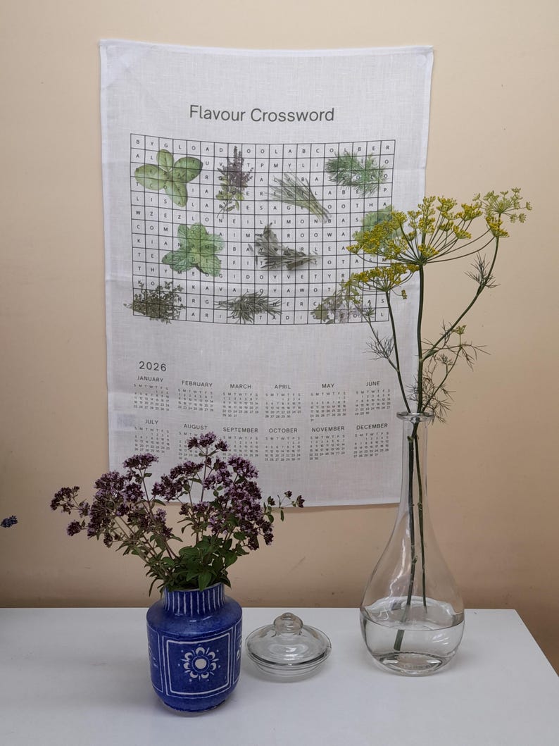 2026 Linen Towel Calendar: Botanical Herbs Crossword Print Etsy