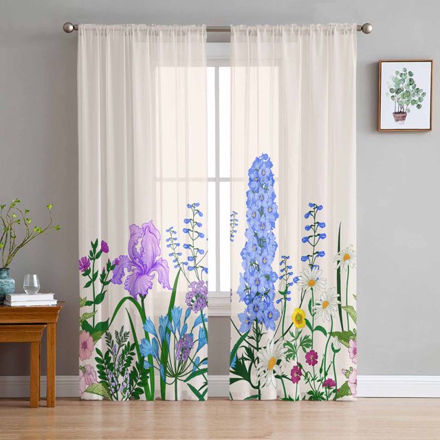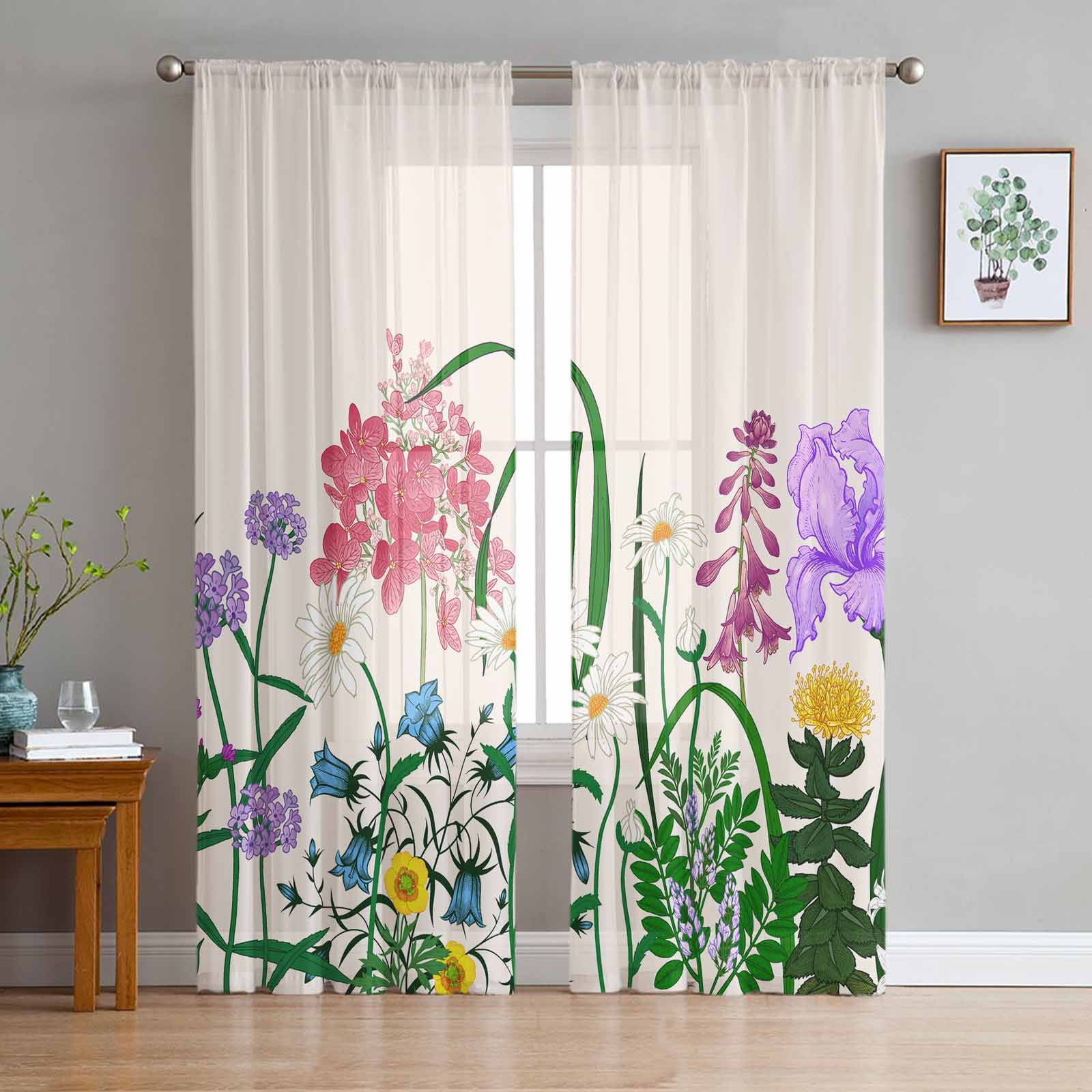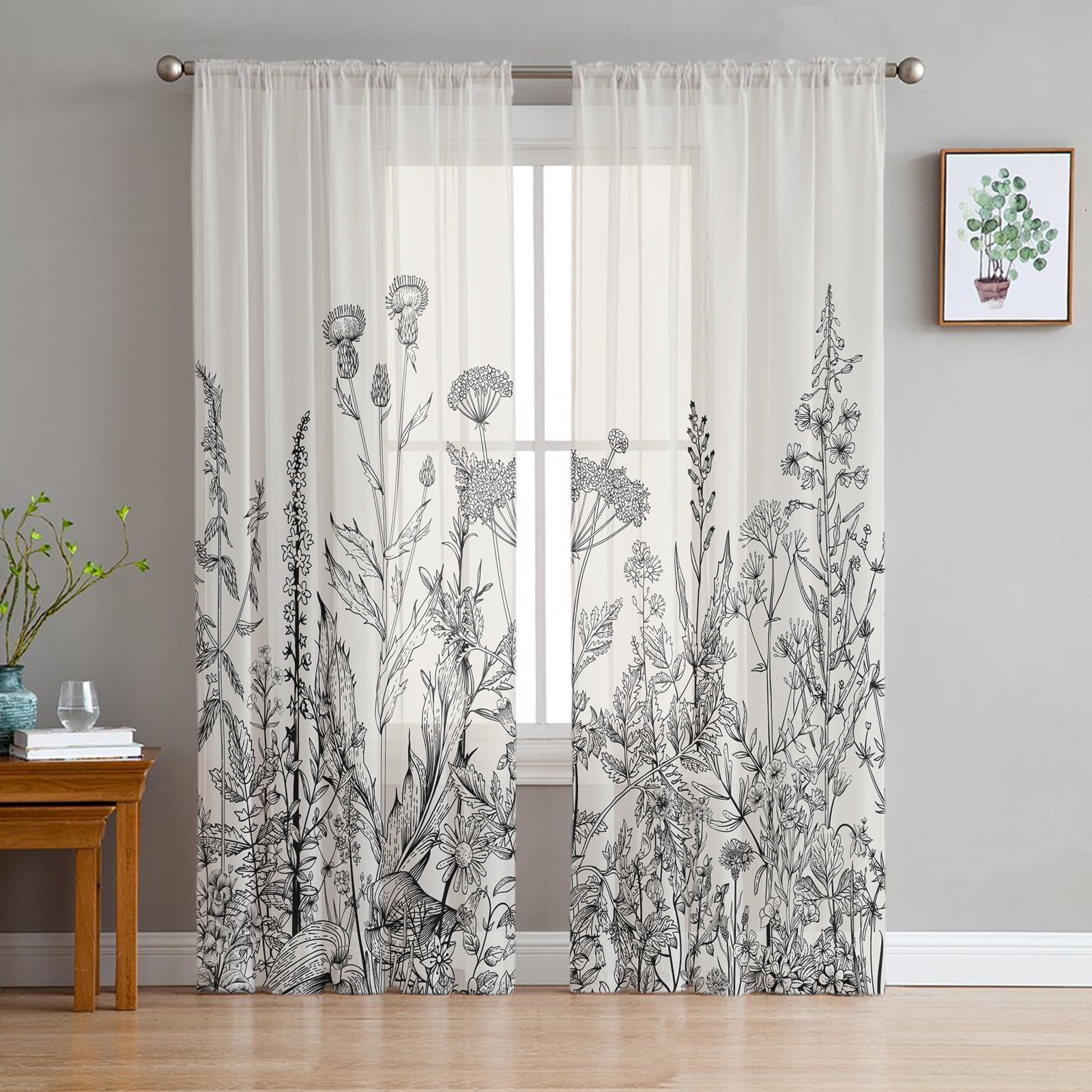 Herb Black White Tulle Sheer Curtains for Living Room ration Curtains