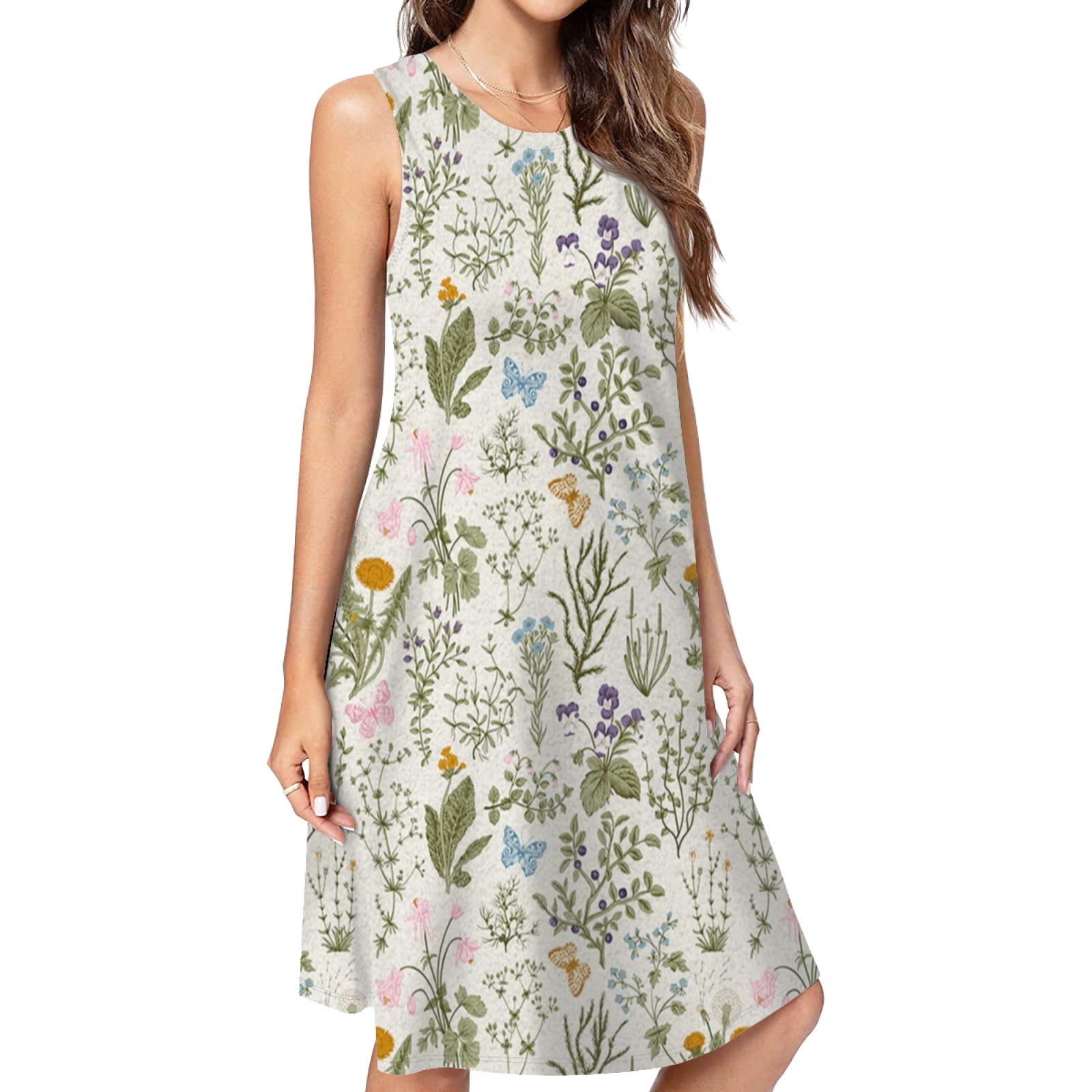 Herb Plants Botanical Leaves With Flower Dress Loose Women #39 S Dress