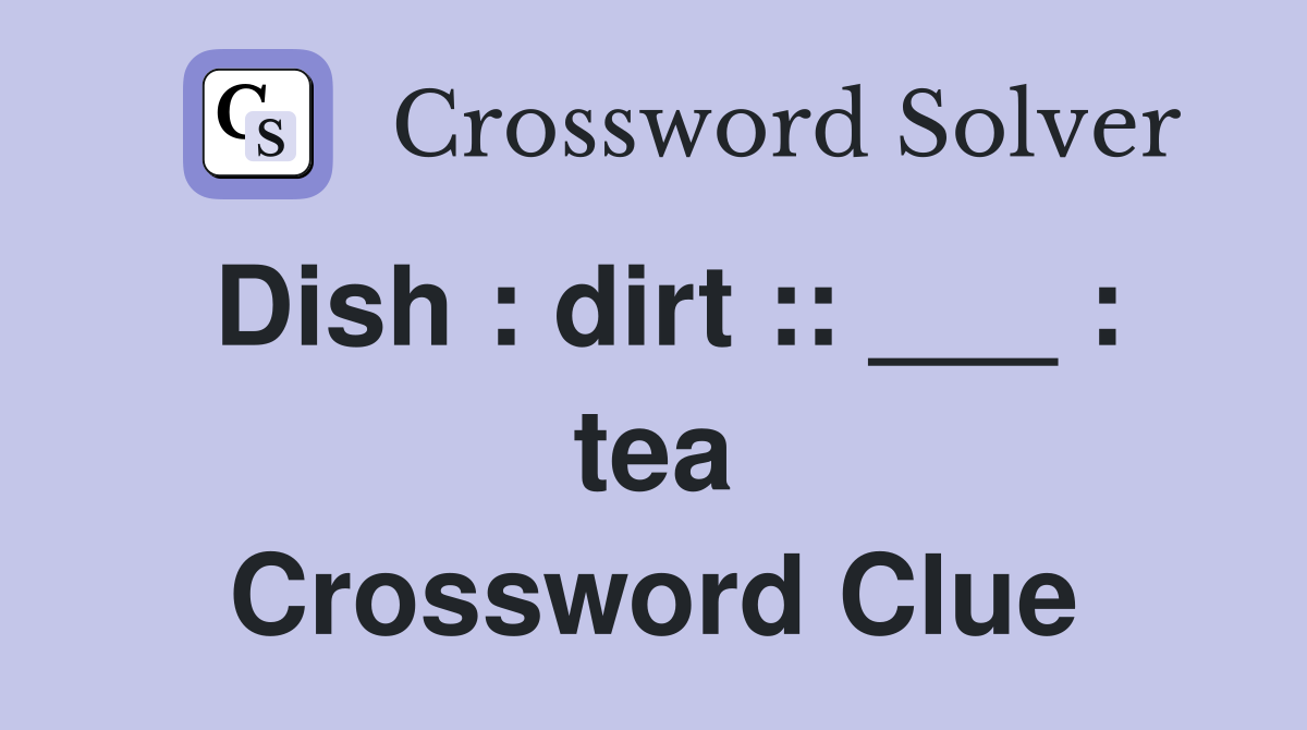 Dish : dirt :: : tea Crossword Clue Answers Crossword Solver