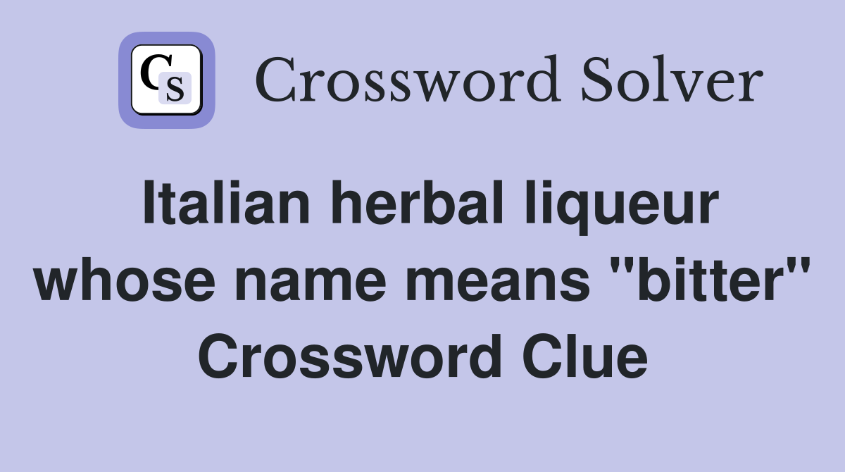 Italian herbal liqueur whose name means quot bitter quot Crossword Clue