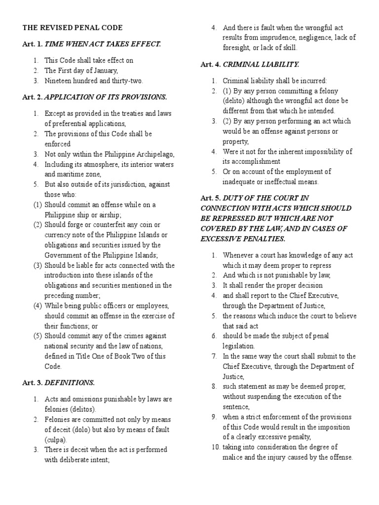 THE REVISED PENAL CODE Art 1 12 PDF Felony Crime Violence