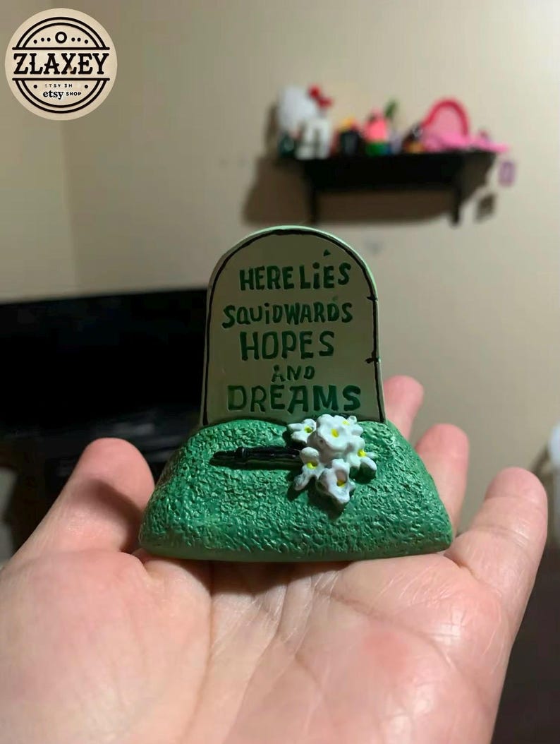 Miniature Squidward Gravestone Decor here Lies Squidwards Hopes and