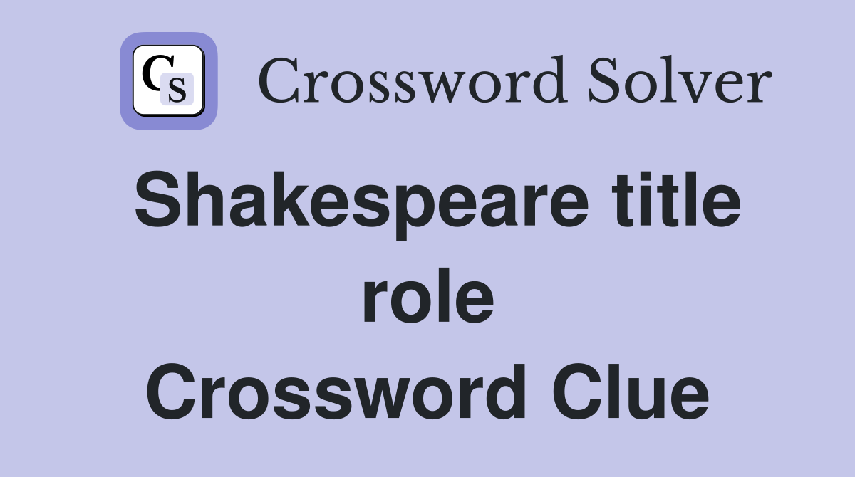 Shakespeare title role Crossword Clue Answers Crossword Solver