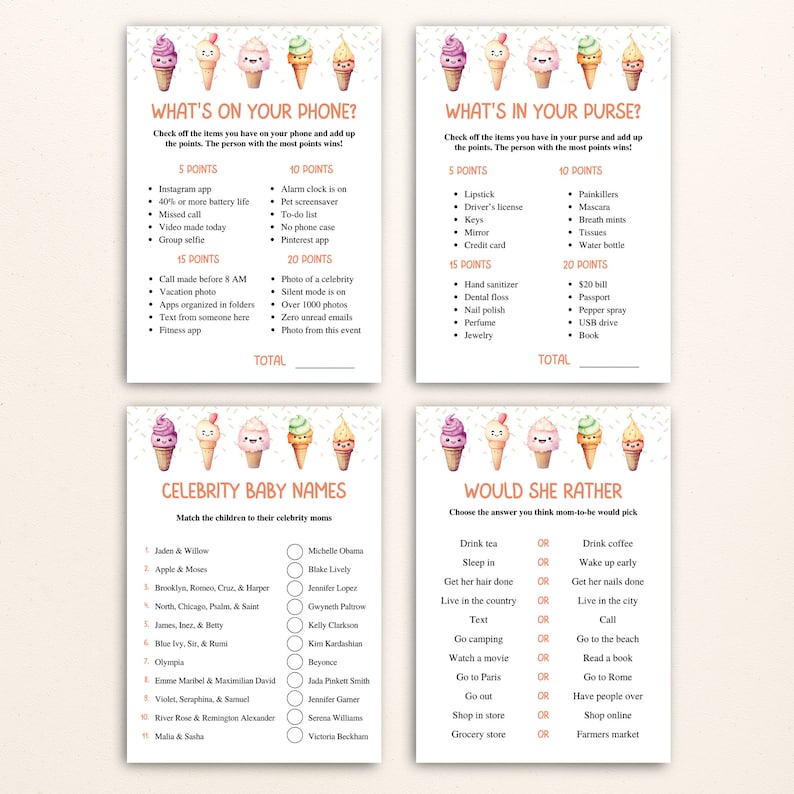 16 Printable Ice Cream Baby Shower Games Heres the Scoop Baby Shower