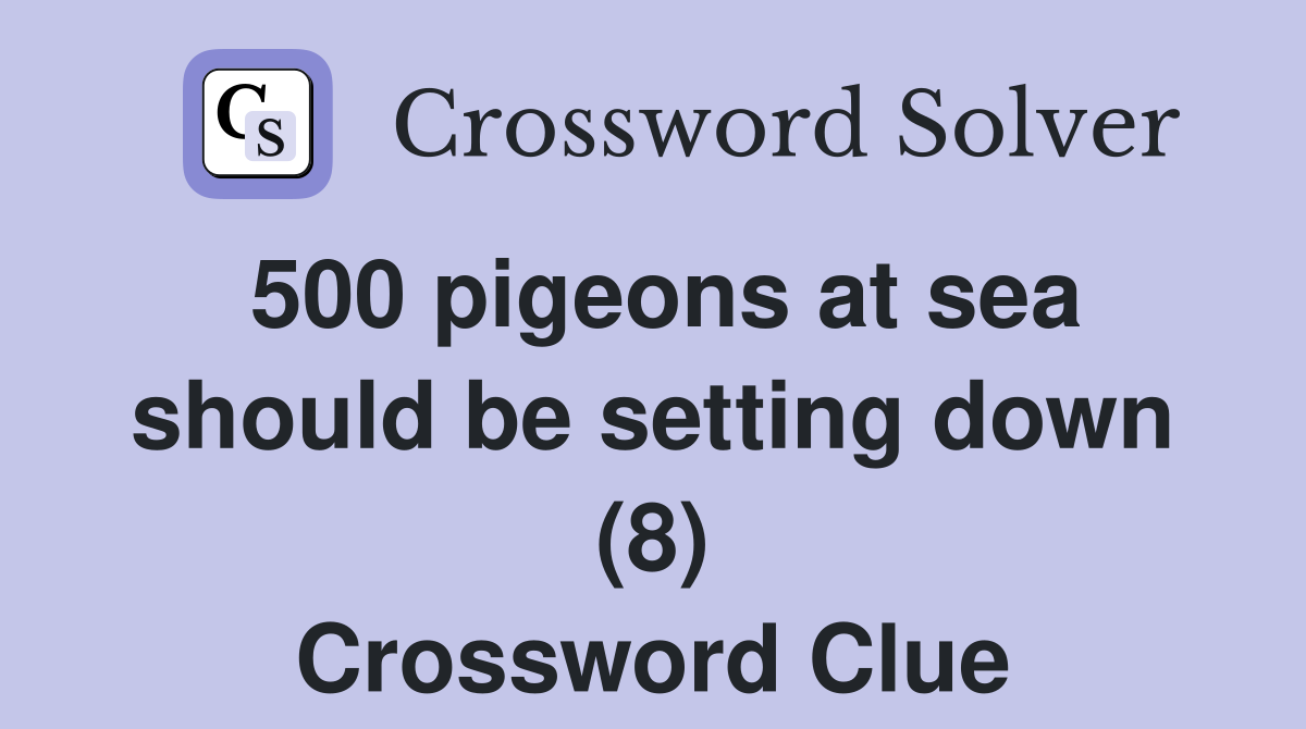 500 pigeons at sea should be setting down (8) Crossword Clue Answers