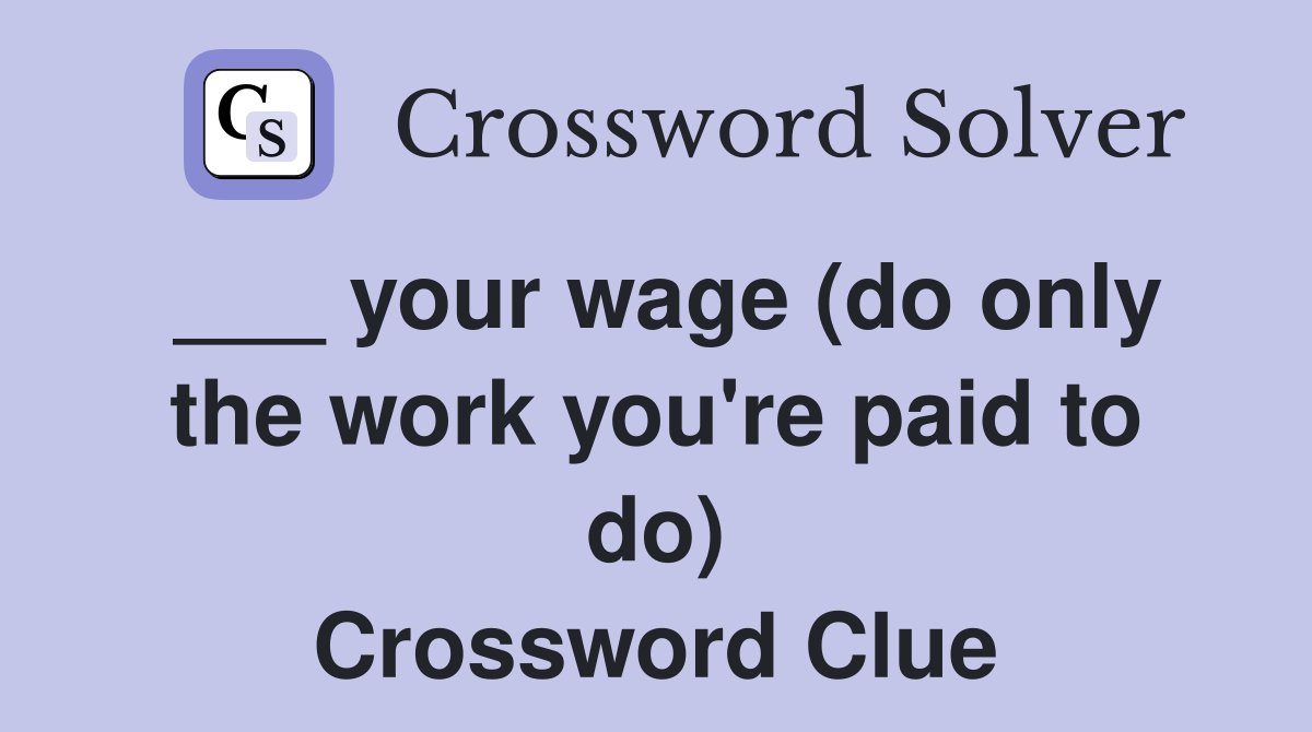 your wage (do only the work you #39 re paid to do) Crossword Clue Answers