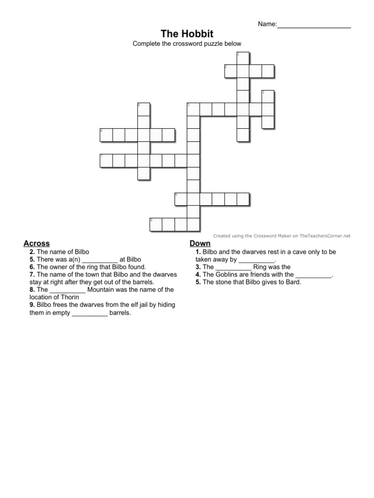 The Hobbit Crossword Puzzle PDF