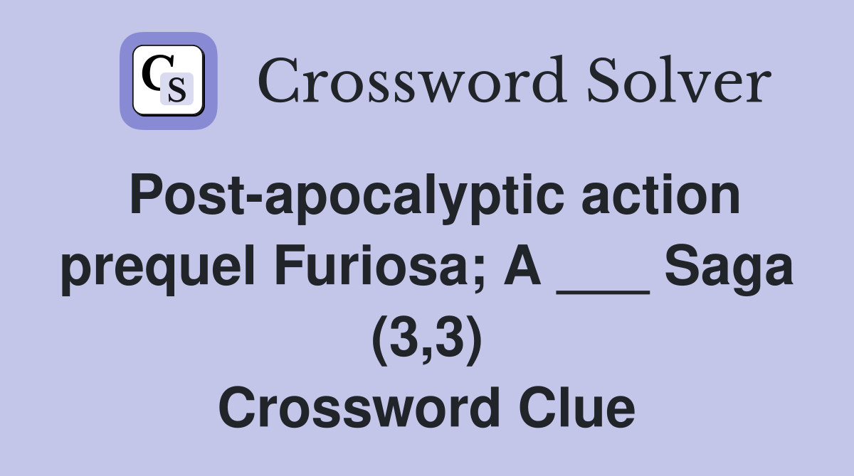 Post apocalyptic action prequel Furiosa A Saga (3 3) Crossword