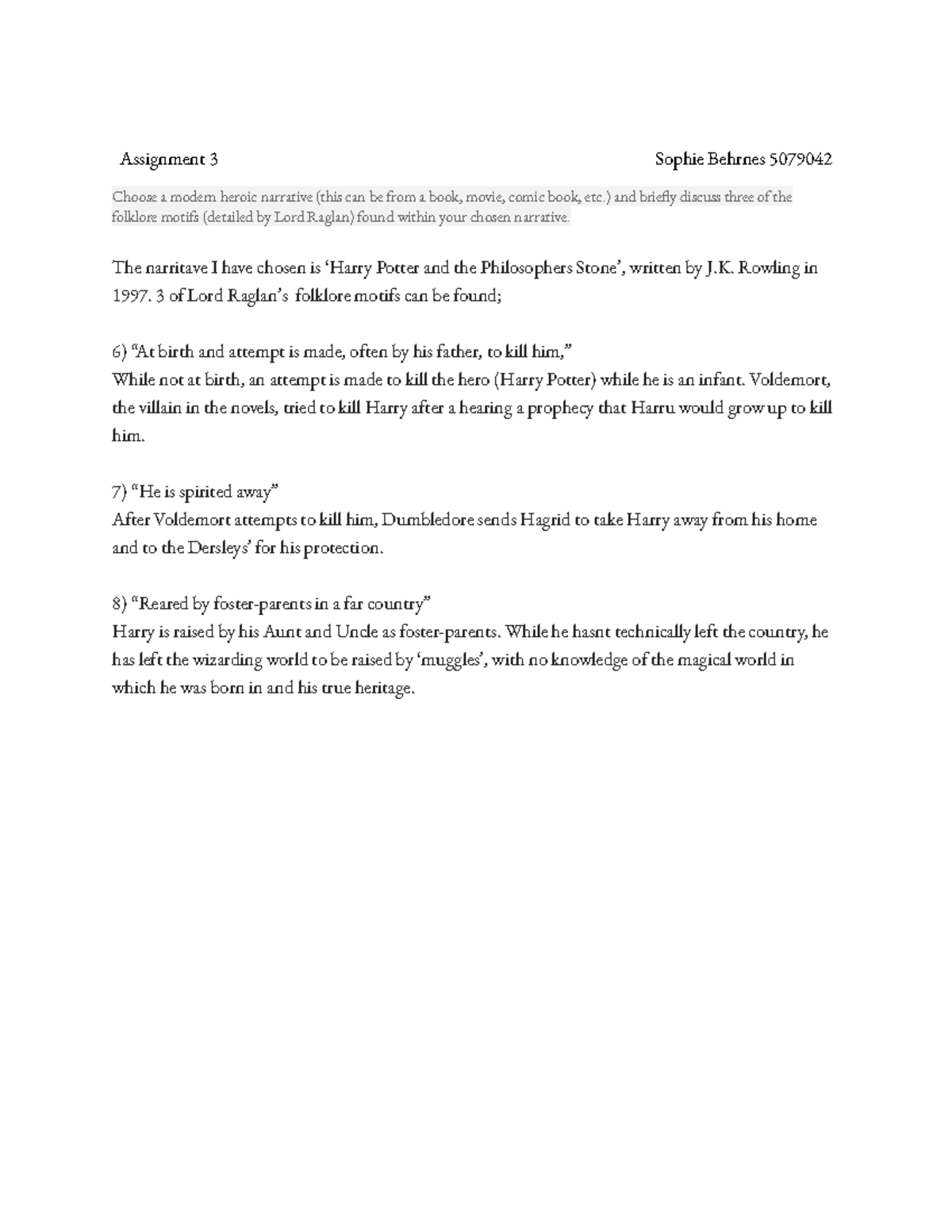 CLAS105 Assignment 3 Choose a modern heroic narrative (this can be