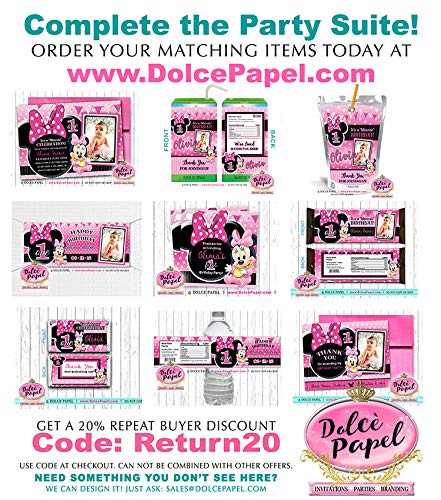 30 Pink and Black BABY 1st Birthday Minnie Custom Birthday Mini Hershey