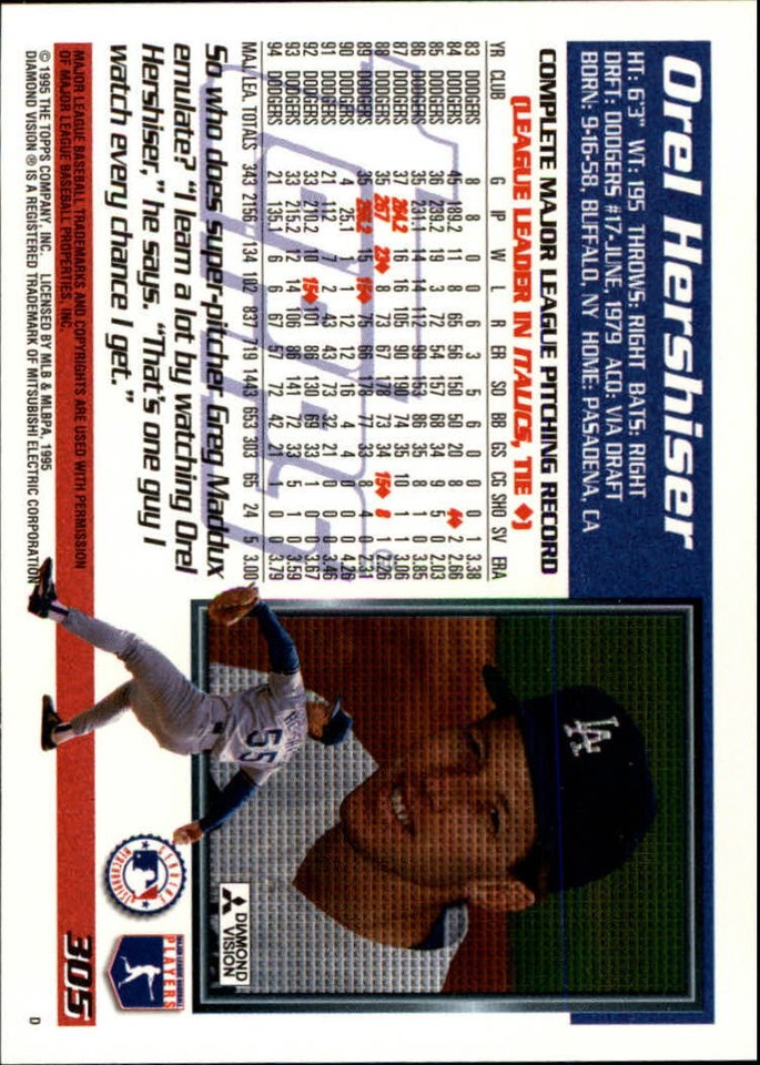 1995 Topps Orel Hershiser Baseball Cards #305 eBay