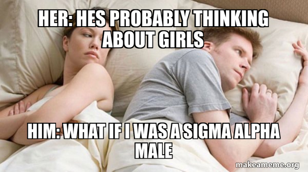 Her: Hes probably thinking about girls Him: What if I was a Sigma Alpha