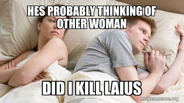 Hes probably thinking of other woman Did I kill laius Couple thinking