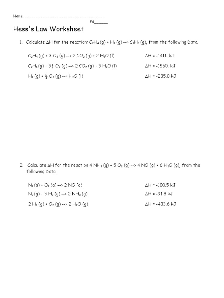 Hess Law Worksheet Answers Printable And Enjoyable Learning