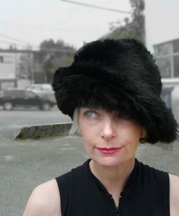 Portrait of Beautiful Young Woman in Retro Clothes Black Coat and Hat