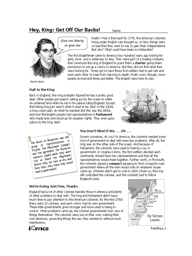 Understanding Colonial Government: Hey King: Get off Our Backs