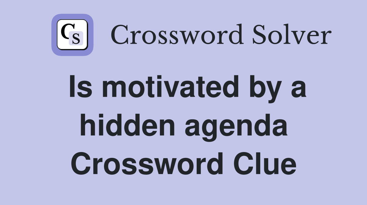 Is motivated by a hidden agenda Crossword Clue Answers Crossword Solver