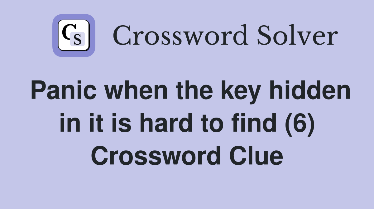 Panic when the key hidden in it is hard to find (6) Crossword Clue
