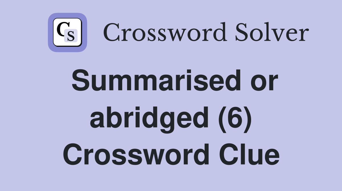 Summarised or abridged (6) Crossword Clue Answers Crossword Solver