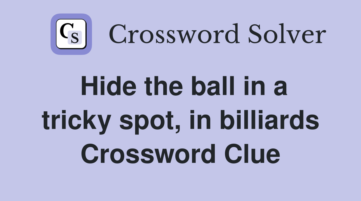 Hide the ball in a tricky spot in billiards Crossword Clue Answers