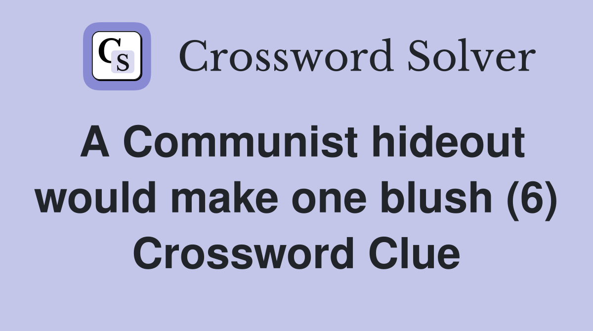 A Communist hideout would make one blush (6) Crossword Clue Answers