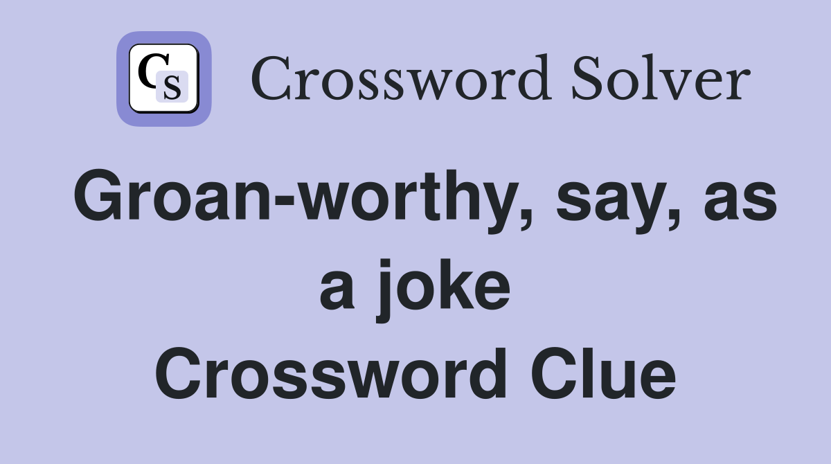 Groan worthy say as a joke Crossword Clue Answers Crossword Solver