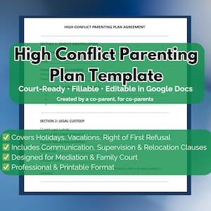 High conflict Parenting Plan Template: Custody Agreement (PDF Google