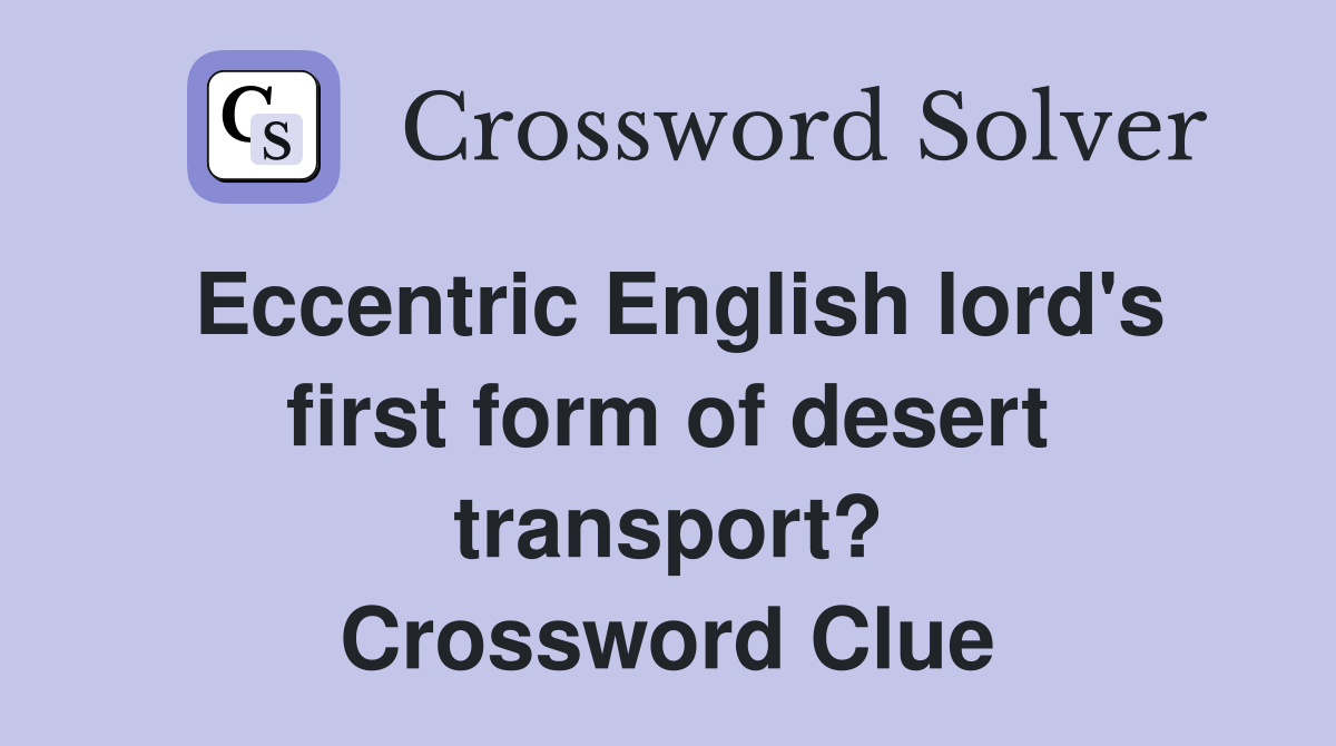 Eccentric English lord #39 s first form of desert transport? Crossword