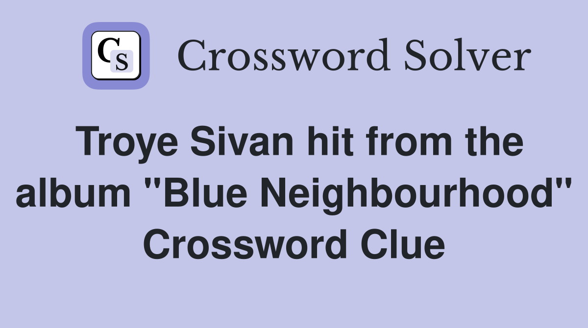 Troye Sivan hit from the album quot Blue Neighbourhood quot Crossword Clue