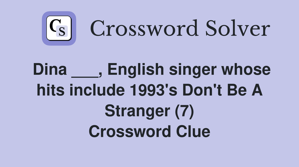 Dina English singer whose hits include 1993 #39 s Don #39 t Be A Stranger