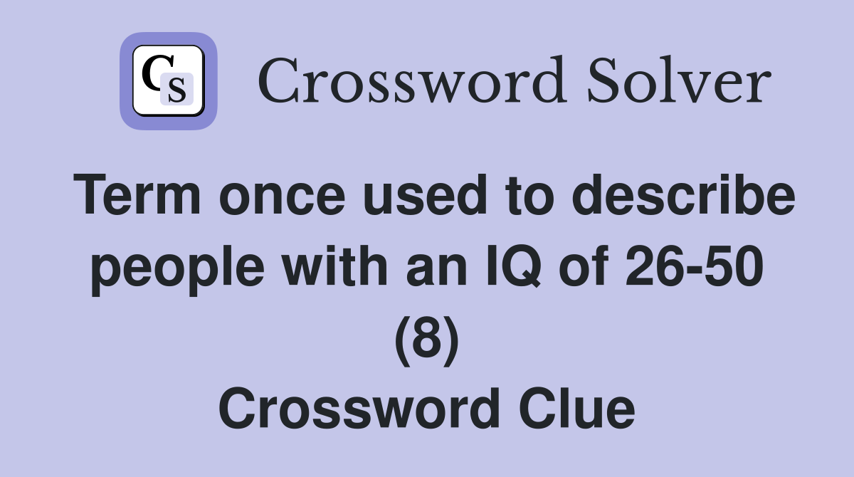 Term once used to describe people with an IQ of 26 50 (8) Crossword