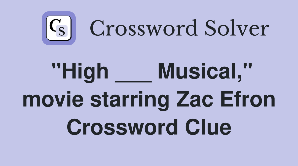 quot High Musical quot movie starring Zac Efron Crossword Clue Answers