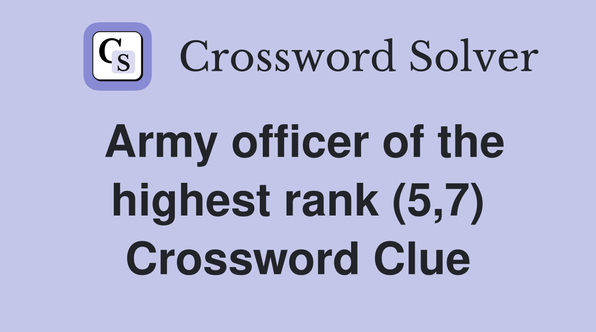 Army officer of the highest rank (5 7) Crossword Clue Answers