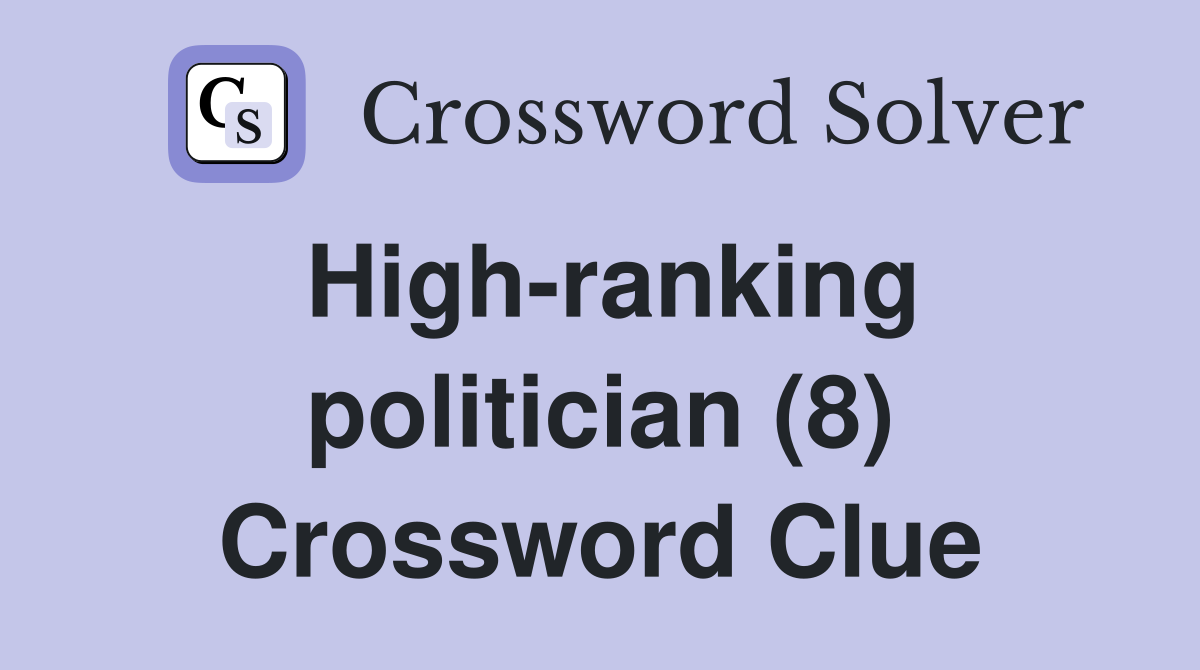 High ranking politician (8) Crossword Clue Answers Crossword Solver