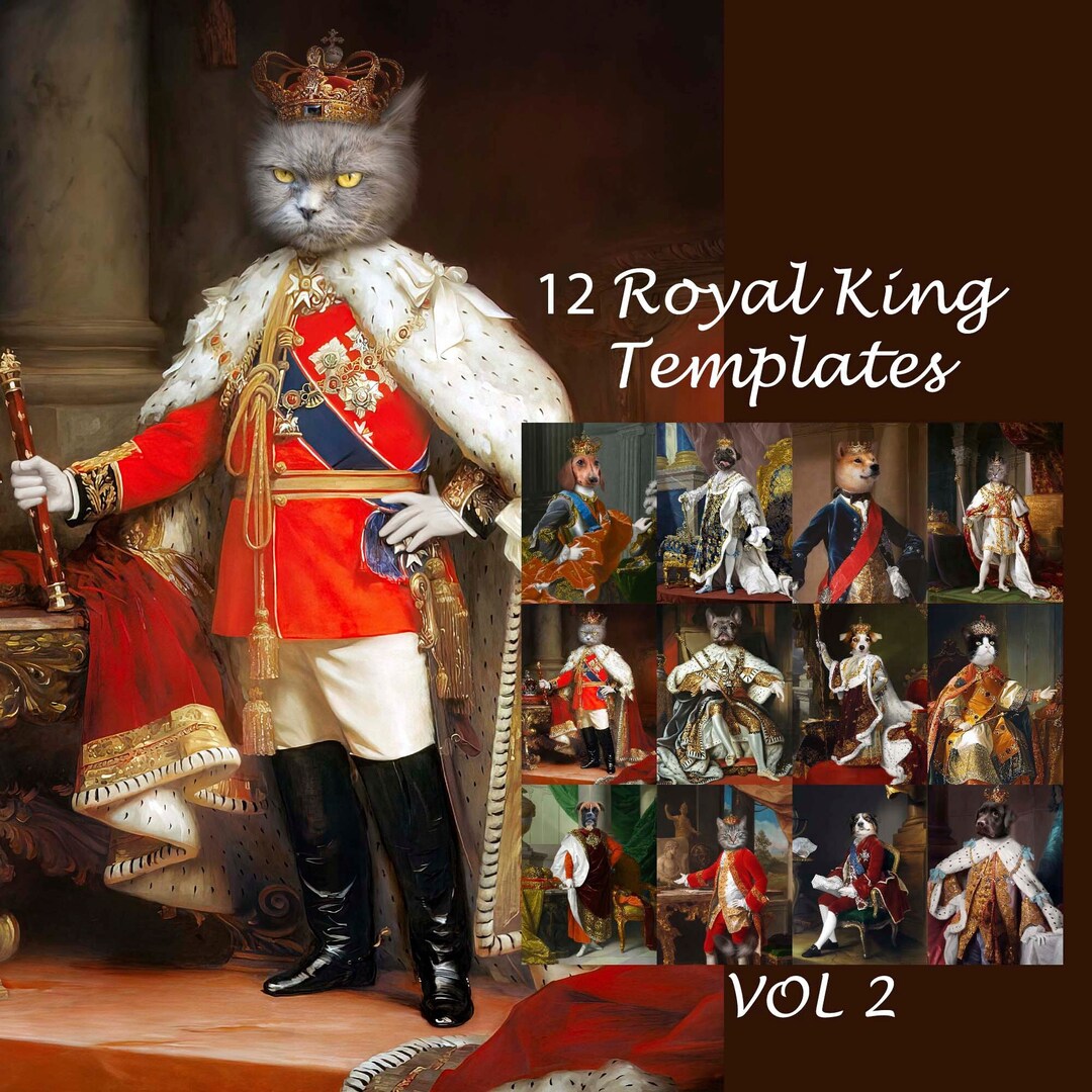 BUNDLE 12 Royal Pet Portrait Template Renaissance Animal King Royal