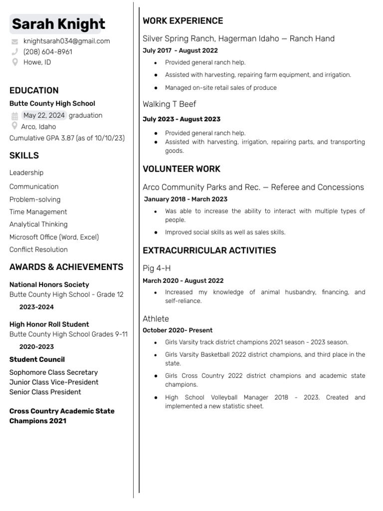 Free High School Resume in Google Docs and Microsoft Word