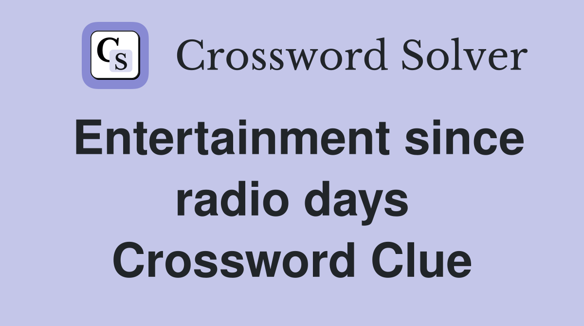 Entertainment since radio days Crossword Clue Answers Crossword Solver